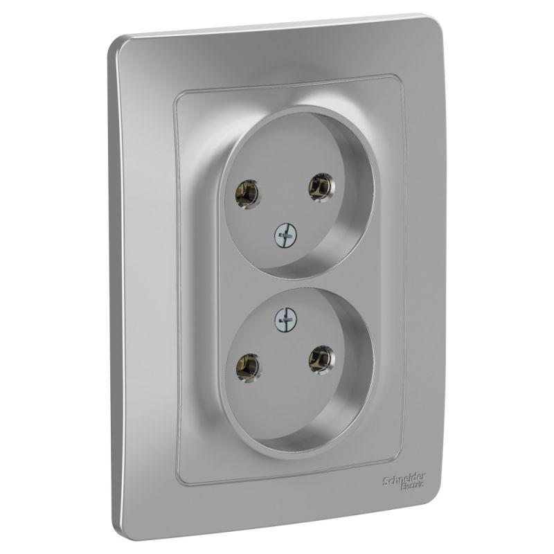 Розетка 2-м СП Blanca 16А IP20 250В без заземл. без защ. шторок алюм. SE BLNRS000023