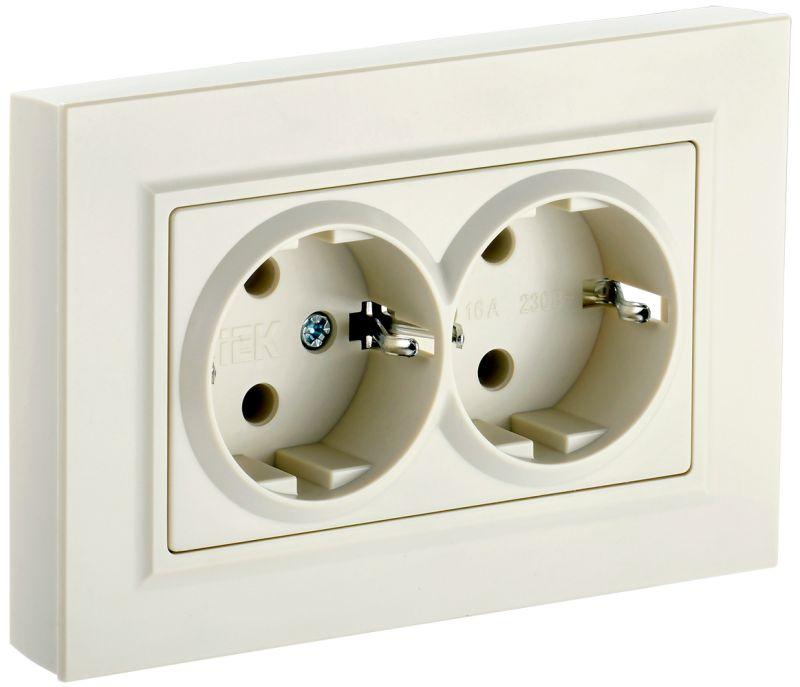 Розетка 2-м СП BRITE РС12-3-БрКр 16А в сборе с заземл. без защ. шторок беж. IEK BR-R21-16-K10-F