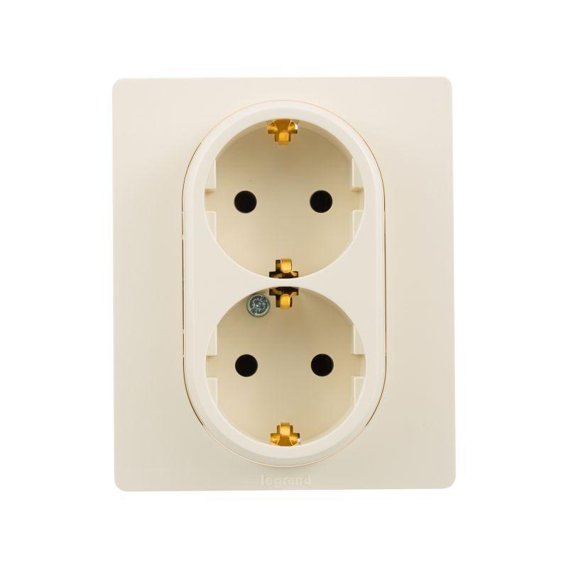 Розетка 2-м СП Etika 16А IP20 250В 2P+E с заземл. немецк. стандарт винт. клеммы в сборе сл. кость Leg 672323