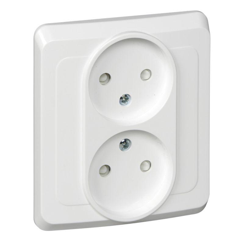Розетка ЭТЮД (белый, скрытой установки) двухместная со шторками, без заземления предназначена для применения в сетях до 250В, на ток до 16А. Двухместная розетка позволяет подключить два устройства в одном месте. Шторки обеспечивают дополнительную безопасность в доме, где находятся дети. Сделано в России.
