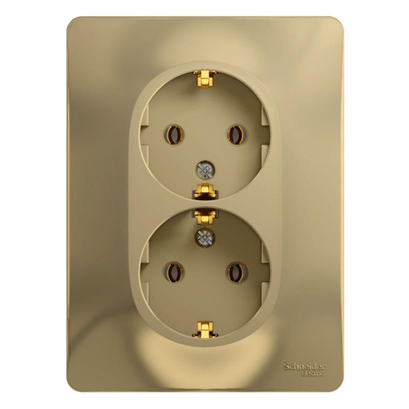 Розетка двойная Glossa (в сборе, цвет титан) с заземлением, без шторок подходит для сетей 250 В, на ток 16 А. - Заземляющий контакт обеспечивает дополнительную защиту от удара электрическим током. При наличии заземления электрический потенциал уходит в землю, защищая человека. - Выполнен из материала PС+ASA, стойкого к УФ-излучению и появлению царапин. - Двойная розетка позволяет подключить два устройства в одном месте.