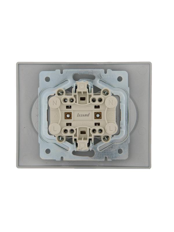 Розетка 2-м СП Karina 16А IP20 без заземл. термопласт матов. серебр. LEZARD 707-4300-128B