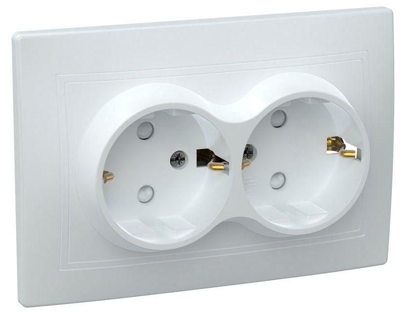 Розетка 2-м СП Кварта РСш12-3-КБ 16А IP20 с заземл. защ. шторки бел. IEK ERK21-K01-16-DM