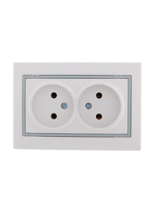 Розетка 2-м СП Mira 16А IP20 без заземл. с сер. вставкой керамика бел. LEZARD 701-0215-128