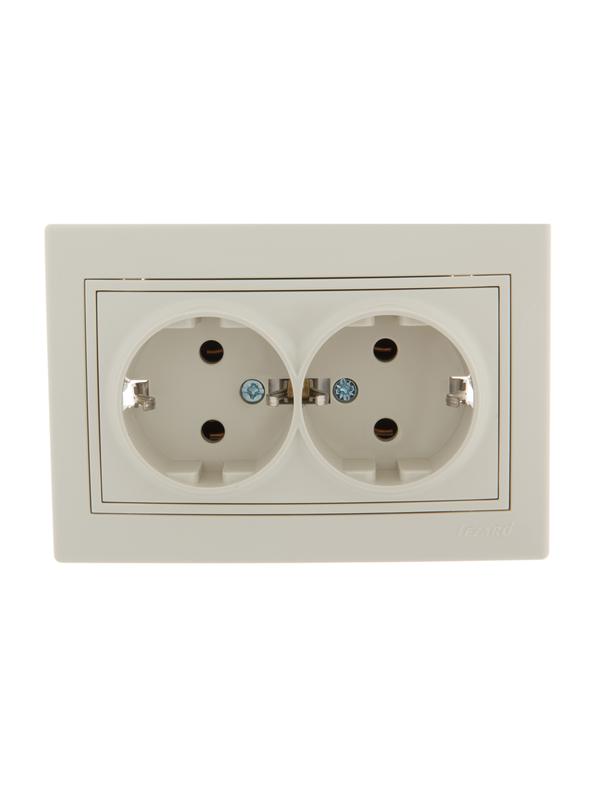 Розетка 2-м СП Mira 16А IP20 с заземл. со вставкой керамика крем. LEZARD 701-0303-127