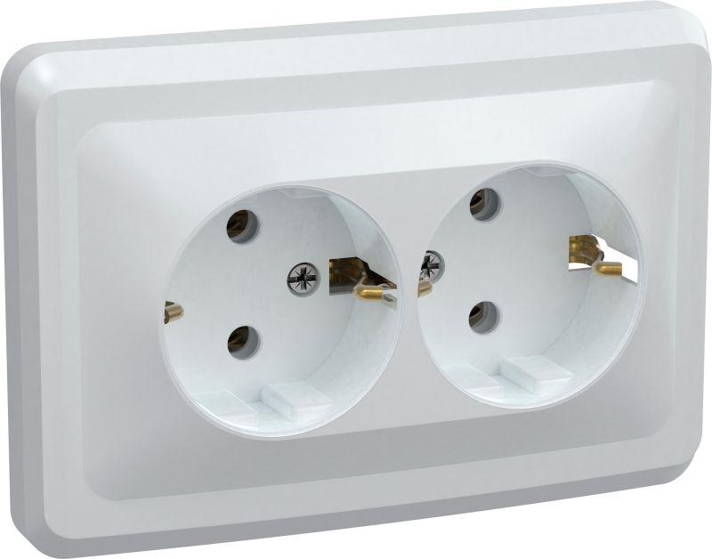 Розетка 2-м СП Вега РС12-3-ВБ с заземл. контактом без защ. шторок 16А бел. IEK ERV21-K01-16-DM