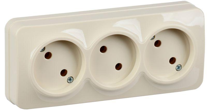 Розетка 3-м ОП GLORY РС23-2-ХК 10А без заземл. крем. IEK ERH30-K33-10