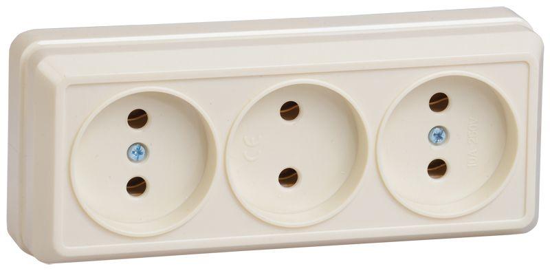 Розетка 3-м ОП Октава 10А IP20 без заземл. крем. IEK ERO30-K33-10-DC