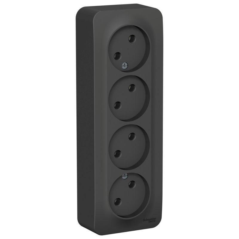 Розетка 4-м ОП Blanca 16А IP20 250В без заземл. без защ. шторок с изолир. пластиной антрацит SE BLNRA000416