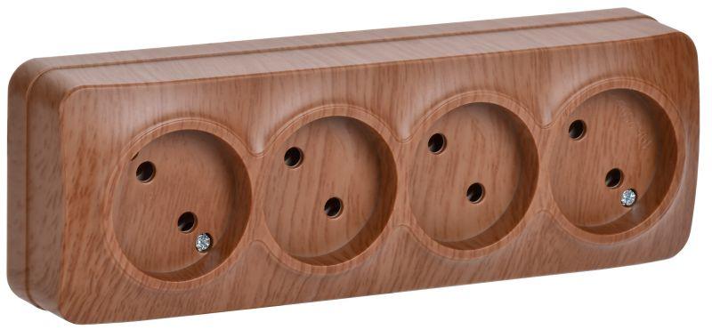 Розетка 4-м ОП GLORY РС24-2-ХД 10А без заземл. дуб IEK ERH40-K24-10