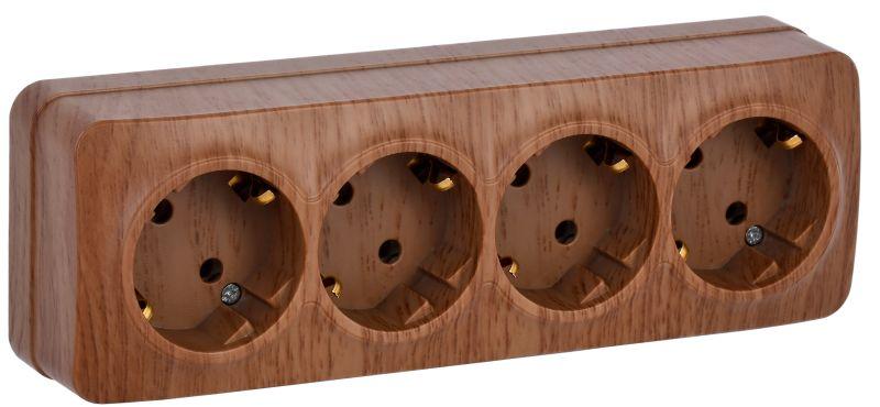 Розетка 4-м ОП GLORY РС24-3-ХД 16А с заземл. дуб IEK ERH41-K24-16