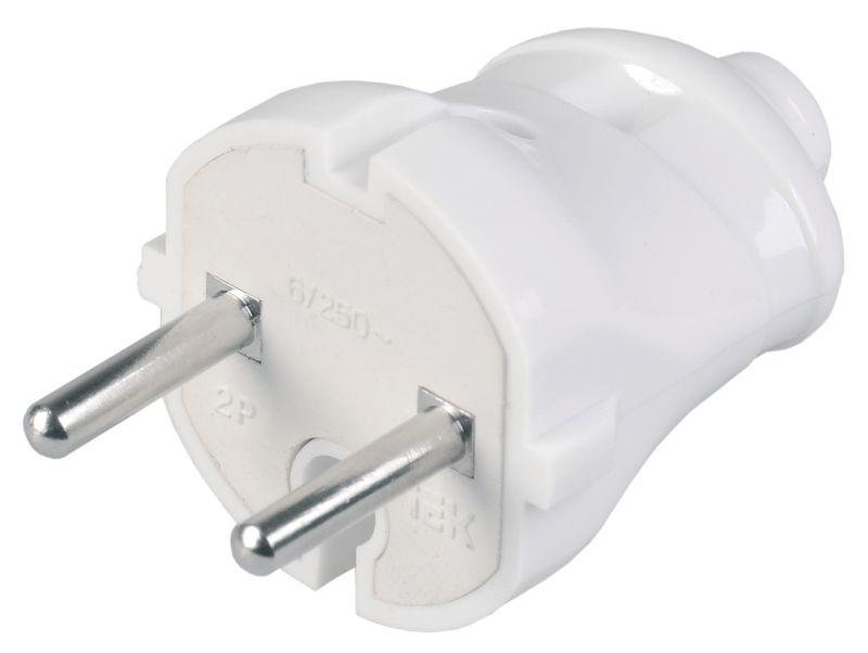 Вилка прямая ВПп20-01-Ст разборная без заземл. контакта 6А бел. IEK EVP20-06-01-K01