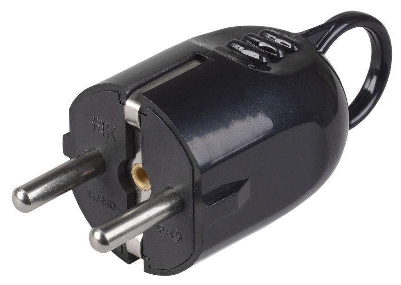 Вилка угловая ВПу12-02-Ст разборная с заземл. с кольцом 16А черн. IEK EVP12-16-01-K02