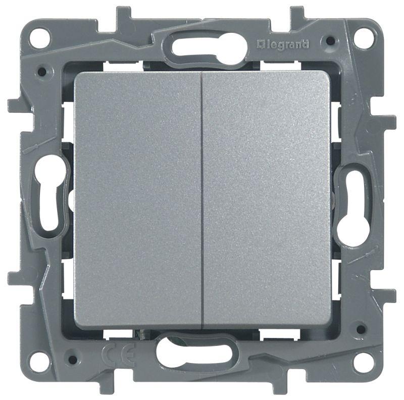 Механизм переключателя 2-кл. СП ETIKA Plus авт. алюм. Leg 672412 – элемент электроустановочного оборудования серии ETIKA Plus. Представляет собой механизм переключателя с двумя клавишами. Цвета "алюминий". Изготовлен из пластика. Монтируется под штукатурку.