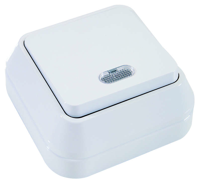 Переключатель проходной 1-кл. ОП 10А IP20 с подсветкой бел. Makel 45125