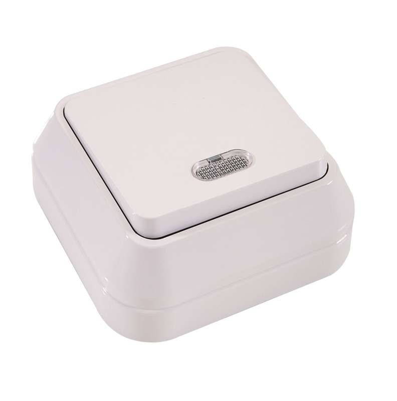 Выключатель 1-кл. ОП 10А IP20 с подсветкой бел. Makel 45121
