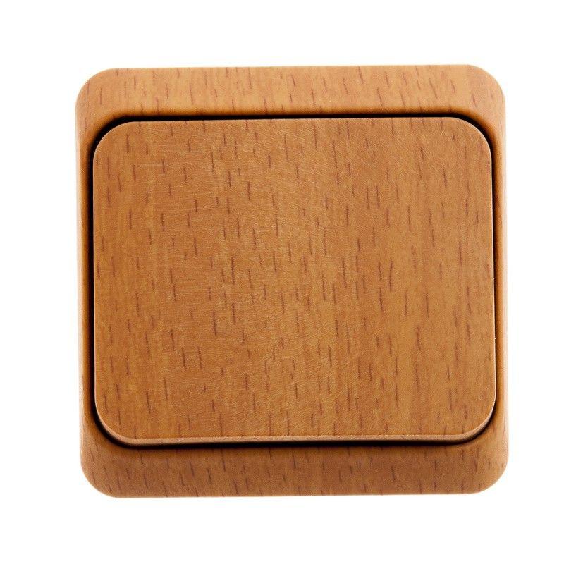 Выключатель ЭТЮД (бук, открытой установки) одноклавишный предназначен для применения в сетях до 250В, на ток до 10А. Выключатель подходит для большинства типов ламп, включая люминесцентные. Изделия цвета Бук обладают уникальным рисунком, напоминающим древесный сруб. Он прост в установке и удобен в применении. Сделано в России.