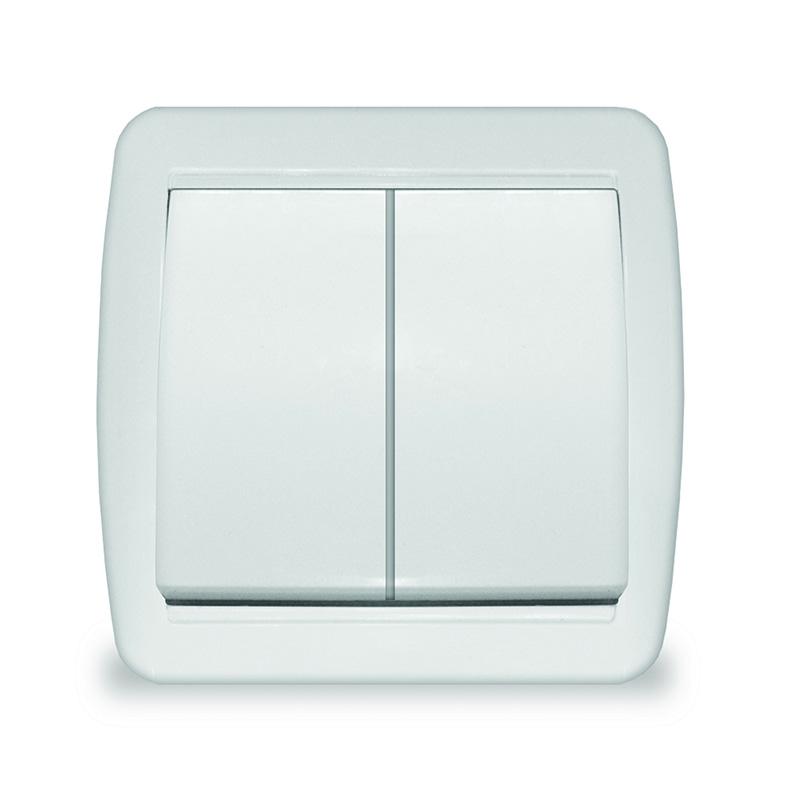 • НАЗНАЧЕНИЕ Выключатель 2-клавишный это двухпозиционный коммутационный аппарат с замыкающими (нормально-разомкнутыми) контактами, предназначенный для работы в сетях с напряжением до 1000 вольт, не предназначенный для отключения токов короткого замыкания, без специальных устройств дугогашения, местного управления, с ручным приводом. • ОБЛАСТЬ ПРИМЕНЕНИЯ В основном применяются для включения и выключения освещения в бытовых и производственных условиях. • ПРИНЦИП ДЕЙСТВИЯ Принцип действия основан на коммутации контактов механическим способом (нажатием) , при этом положения коммутации фиксированы и позволяют находится в этом режиме достаточно долго, вплоть до следующего воздействия. • ДОПОЛНИТЕЛЬНЫЕ ПРИНАДЛЕЖНОСТИ ИЛИ АКСЕССУАРЫ