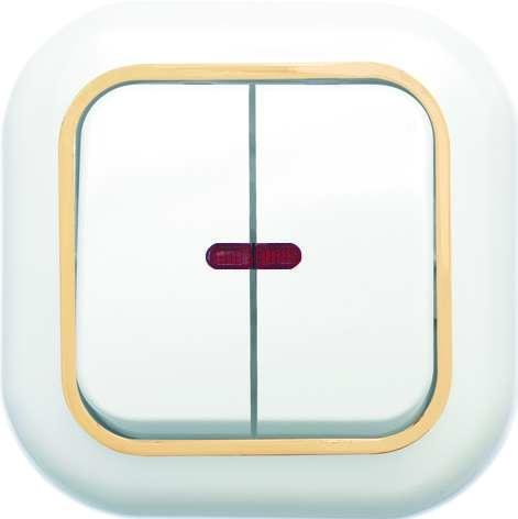 Выключатель 2-кл. СП Валентина 10А IP20 С56-175 с индикацией бел./зол. Кунцево 7650