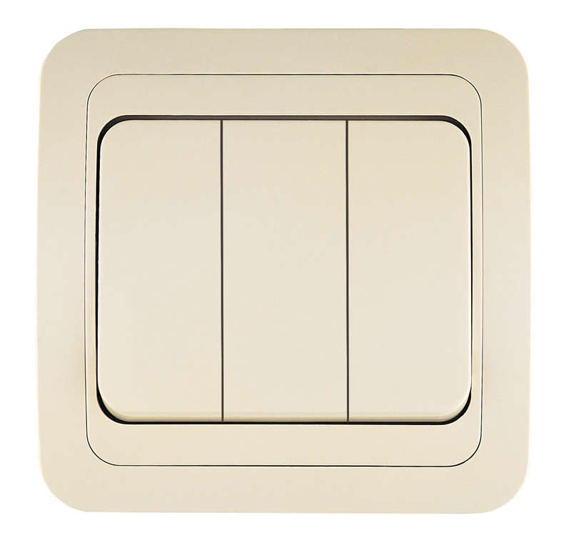 • НАЗНАЧЕНИЕ Выключатель 3-клавишный это двухпозиционный коммутационный аппарат с замыкающими (нормально-разомкнутыми) контактами, предназначенный для работы в сетях с напряжением до 1000 вольт, не предназначенный для отключения токов короткого замыкания, без специальных устройств дугогашения, местного управления, с ручным приводом. • ОБЛАСТЬ ПРИМЕНЕНИЯ В основном применяются для включения и выключения освещения в бытовых и производственных условиях. • ПРИНЦИП ДЕЙСТВИЯ Принцип действия основан на коммутации контактов механическим способом (нажатием) , при этом положения коммутации фиксированы и позволяют находится в этом режиме достаточно долго, вплоть до следующего воздействия. • ДОПОЛНИТЕЛЬНЫЕ ПРИНАДЛЕЖНОСТИ ИЛИ АКСЕССУАРЫ