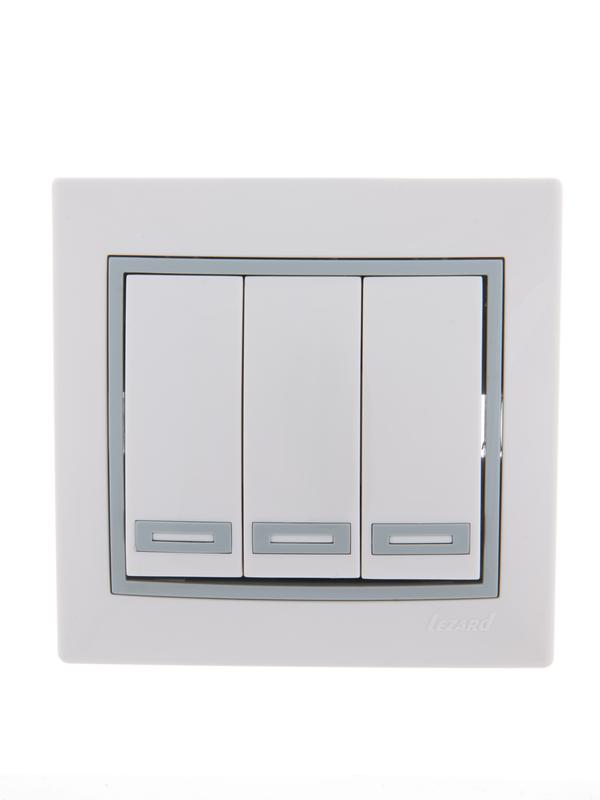 Выключатель 3-кл. СП Mira 10А IP20 с сер. вставкой бел. LEZARD 701-0215-109