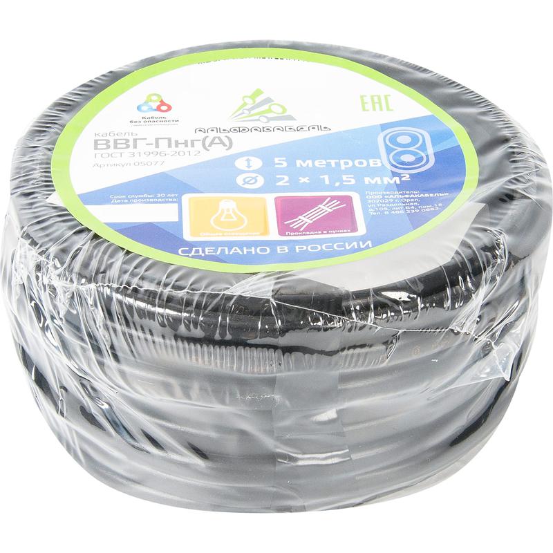 Кабель ВВГ-Пнг(А) 2х1.5 ок (N) 0.66кВ (бухта 5м) (шт) Альфакабель 65545