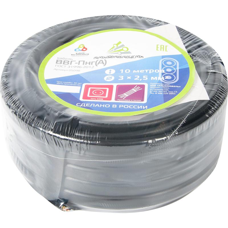 Кабель ВВГ-Пнг(А) 3х2.5 ок (N PE) 0.66кВ (бухта 10м) (шт) АЛЬФАКАБЕЛЬ 45990