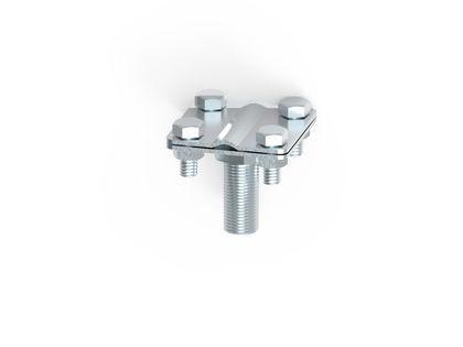 Соединитель применяется для подключения круглого (8-10 мм) либо плоского (25 мм) проводника к молнеприемному стержню. Соединитель устанавливается в бетонное основание путем ввинчивания. Диаметр резьбы - 16 мм. Материал - горячеоцинкованная сталь.