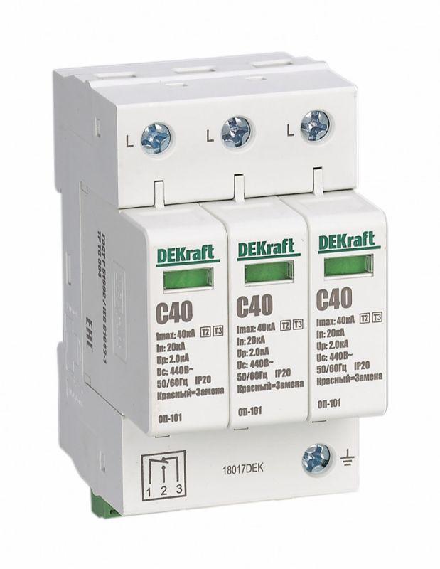 Ограничитель перенапряжения ОП-101 3п 40кА C 420В DEKraft 18017DEK