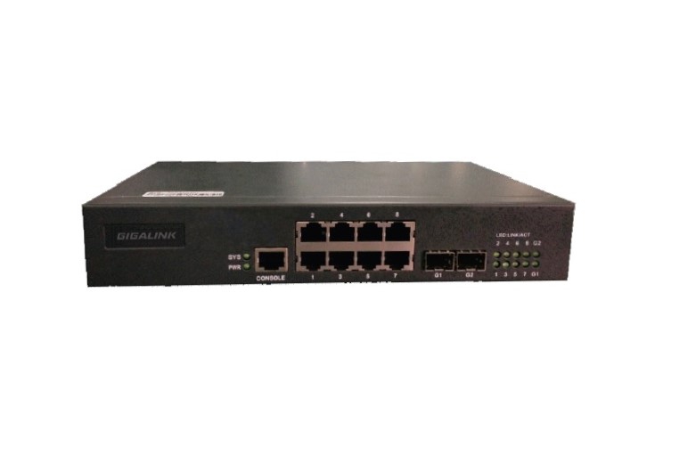 Управляемый коммутатор GIGALINK GL-SW-F201-10, L2, 8 портов 10/100Мб/с BASE-T, 2x10/100/1000Мб/с Base-X