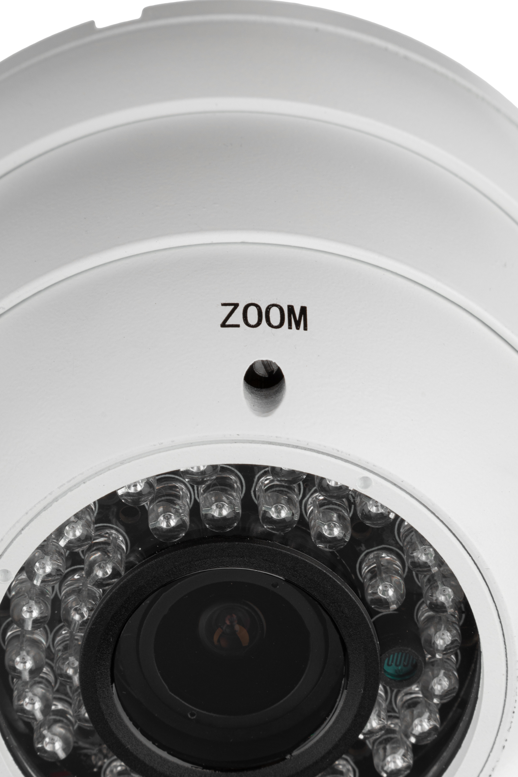 Объектив вариофокальный — с диапазоном фокусных расстояний от 2,8 до 12 мм (88°-25°). Есть встроенная ИК-подсветка (до 40 м) и режим «день/ночь» с механическим ИК-фильтром.