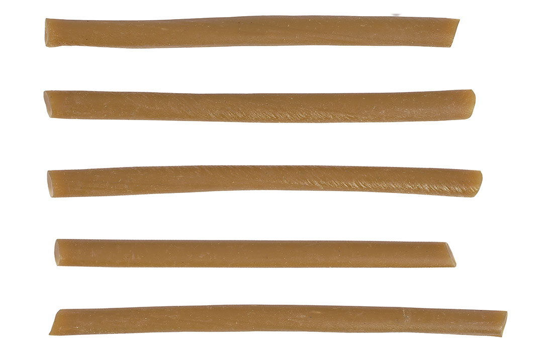 Клей наносится путем натирания сплошным слоем на стыкуемые детали. Перед натиранием конец жгута разогревается до плавления (от 80 до 100 °С) умеренным пламенем газовой горелки. Участок, на который наносится клей-расплав, должен быть равен длине подготовленного отрезка трубки ТУТ. Толщина слоя клея-расплава должна быть не менее 1 мм.