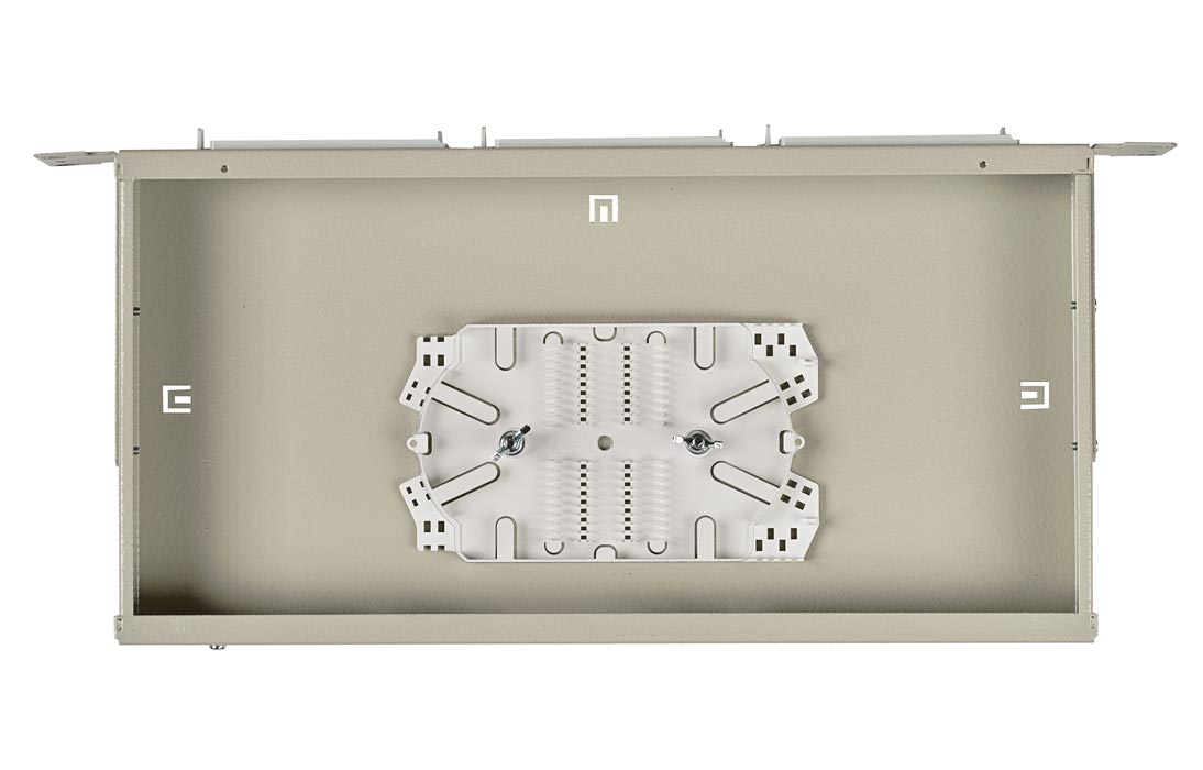 Крепление кабеля по оболочке осуществляется металлическим хомутом и/или нейлоновыми стяжками, на Т-образном лепестке. Центральный силовой элемент крепится при помощи металлической скобы. Сменные пластиковые планки на 4 и 8 отверстий обеспечивают установку адаптеров-розеток различных типов: FC, SC, ST, дуплекс LC.