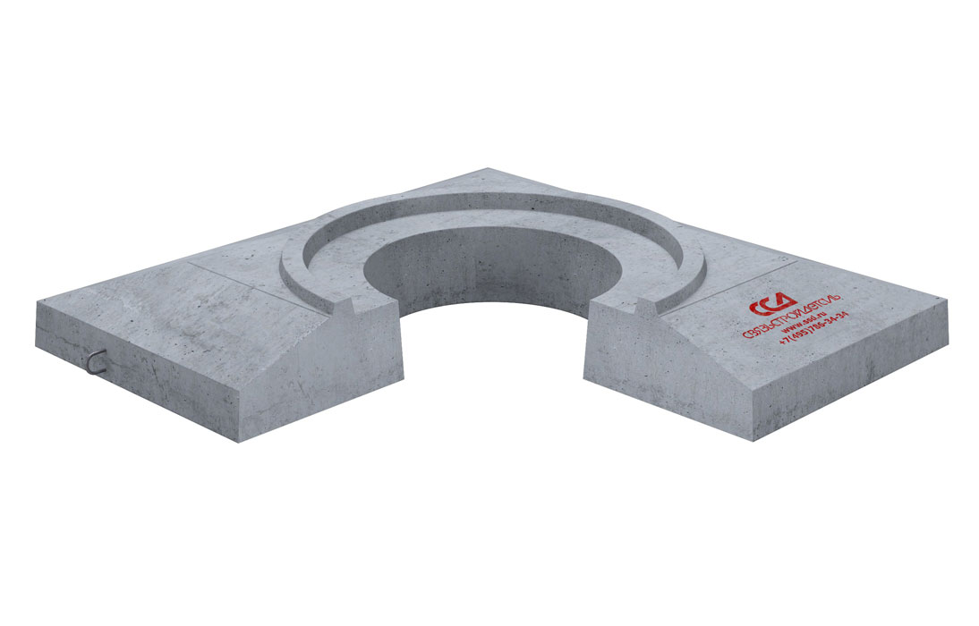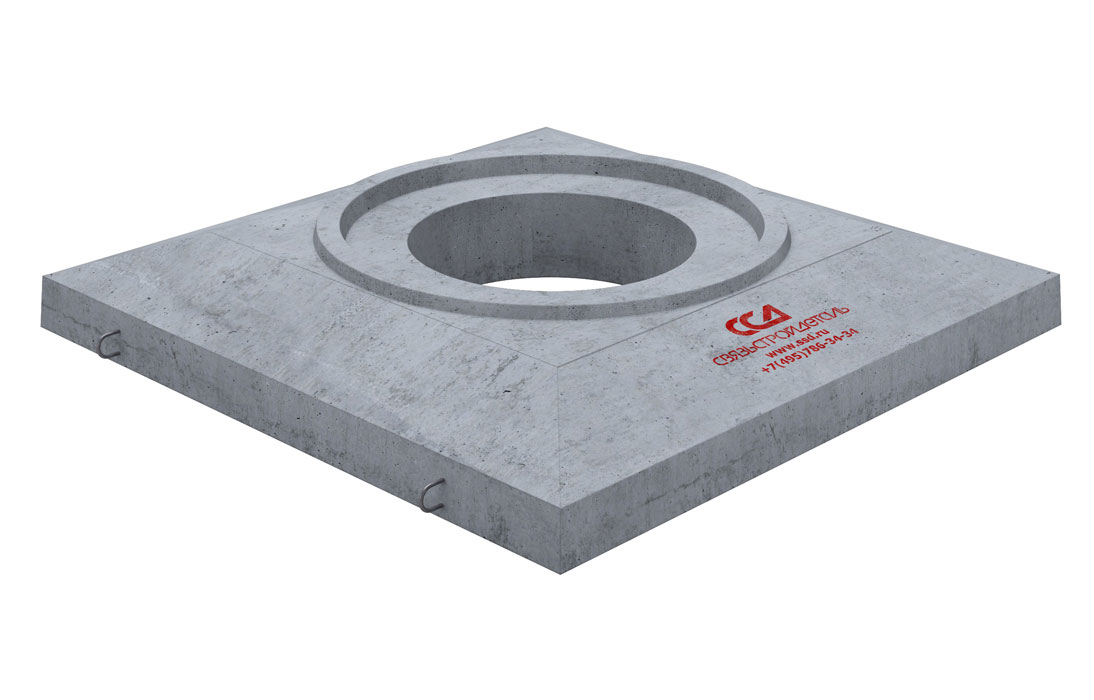 Плита имеет квадратную форму усеченной пирамиды, в центре которой расположено круглое отверстие диаметром 600 мм для формирования горловины с люком. Плита рассчитана на нормативную нагрузку «НК-80», то есть может размещаться под проезжей частью.