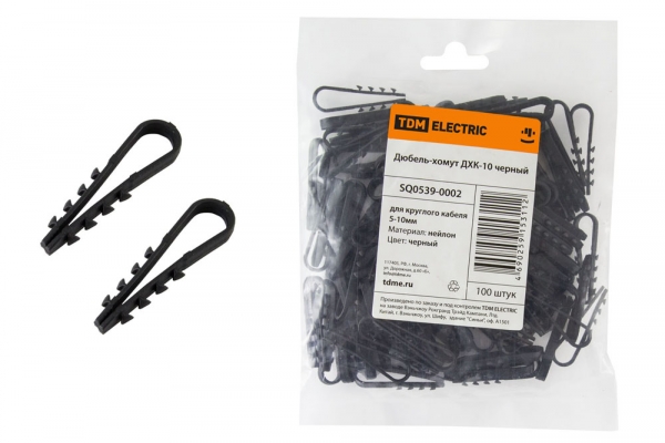 Дюбель-хомут ДХК-10 для круглого кабеля 5-10мм нейлон черный (100шт) TDM