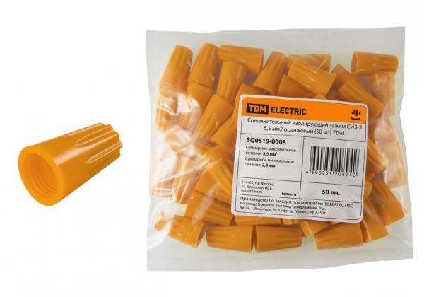 Соединительный изолирующий зажим СИЗ-3 5,5 мм2 оранжевый (50 шт) TDM