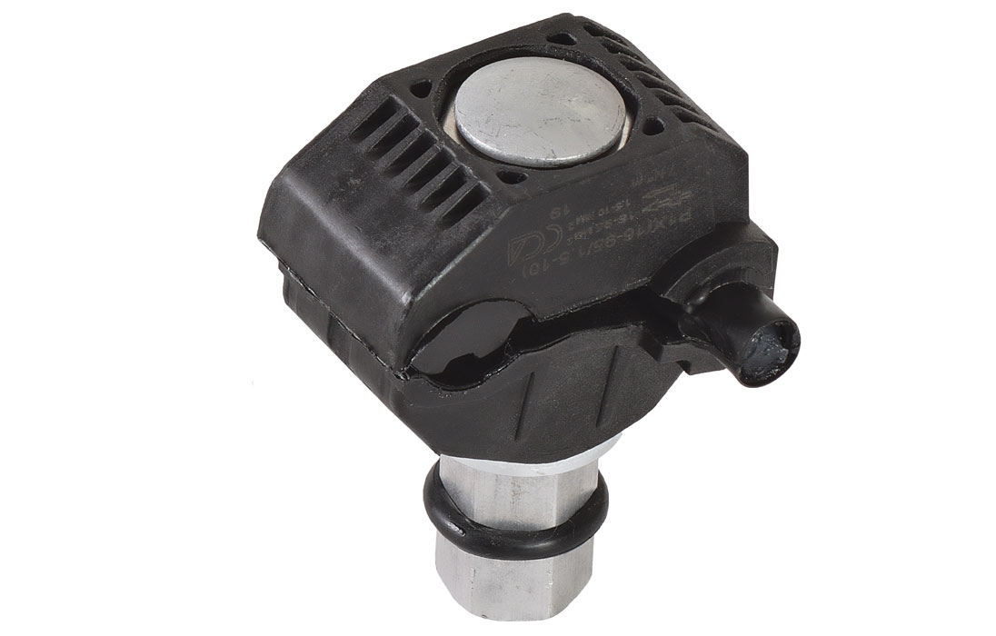 Предназначен для подключения ответвляющихся линий к магистральной. Посредством прокола соединяются два провода без удаления изоляционного слоя. Чтобы предупредить окисление в месте прокола внутри есть специальная смазка, а контакт обеспечивается пластинами с пирамидальными зубьями и калиброванной головкой срывного типа. Зажимы оснащены второй головкой для демонтажа, оставаясь при этом продуктом одноразового монтажа. Посредством их замены можно безопасно соединить провода или необходимые элементы цепи. Качественный зажим для СИП кабеля является гарантией максимально быстрого и безопасного монтажа. Отличительной особенностью продукта является высокое качество материалов изготовления. Сечение соединяемых изолированных проводников 16-95 мм² с 1,5-10 мм².