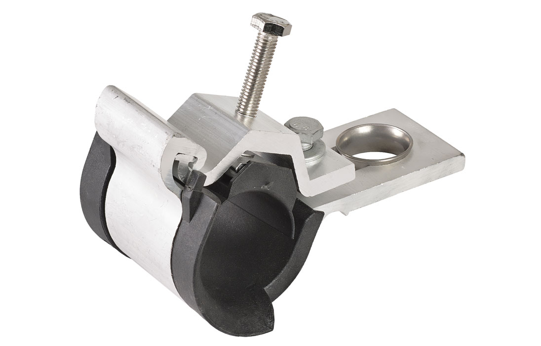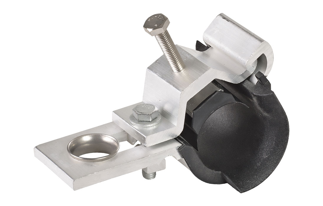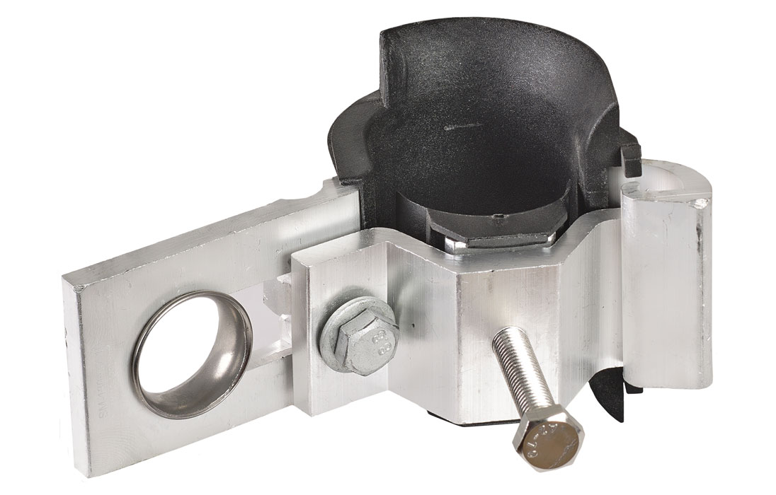 Кронштейн состоит из двух алюминиевых профилей, соединенных болтовым соединением, образующий замкнутый контур, препятствующий выскальзыванию провода в случае ослабления затяжки. Зажатие провода осуществляется прижимом.